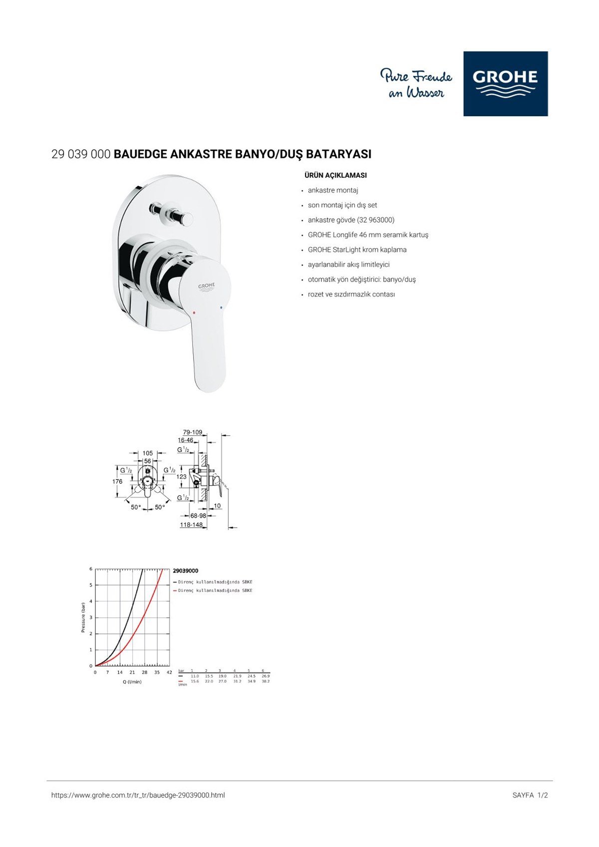 Grohe BauEdge Ankastre Banyo/Duş Bataryası Krom