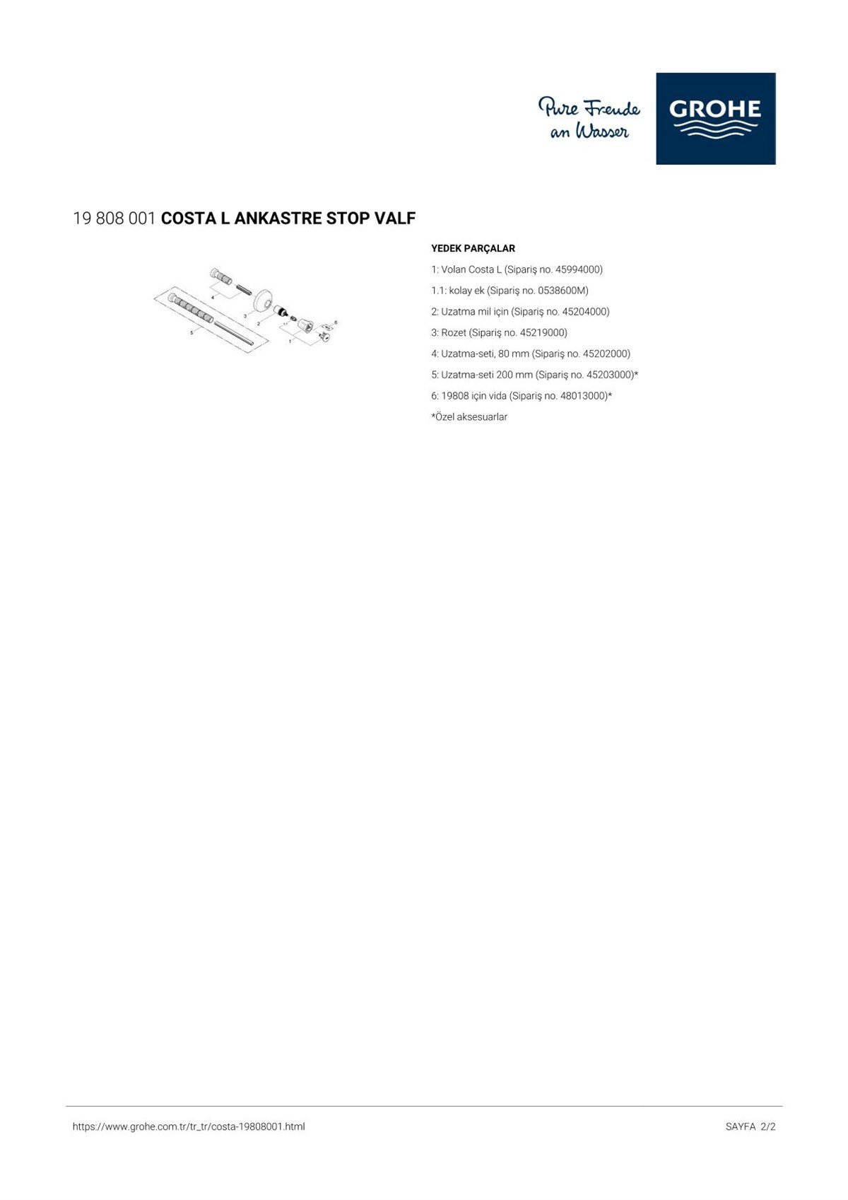 • Gizli taharet sistemi için 29 811 000 ile, duş sistemi için 29 802 000 ile sipariş edilir