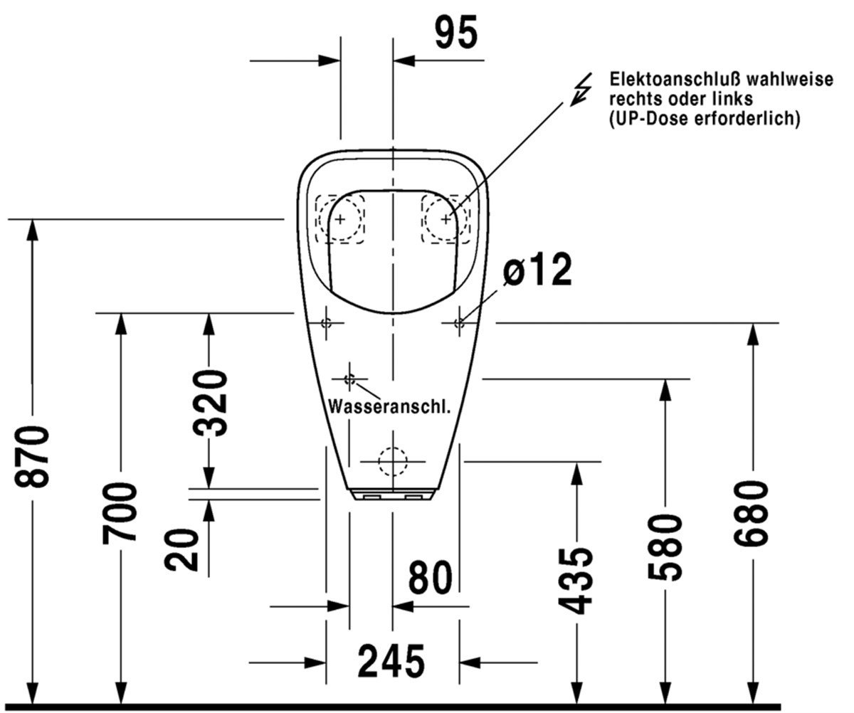 Elektrikli elektronik pisuvar, gizli su girişli, sifonik yıkama, yatay çıkışlı, komple elektronik dahil
