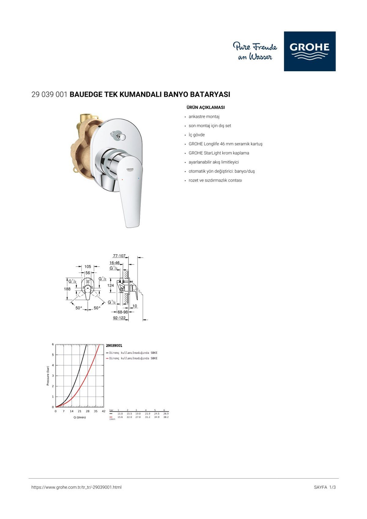 Grohe Bauedge Tek Kumandalı Banyo Bataryası Krom