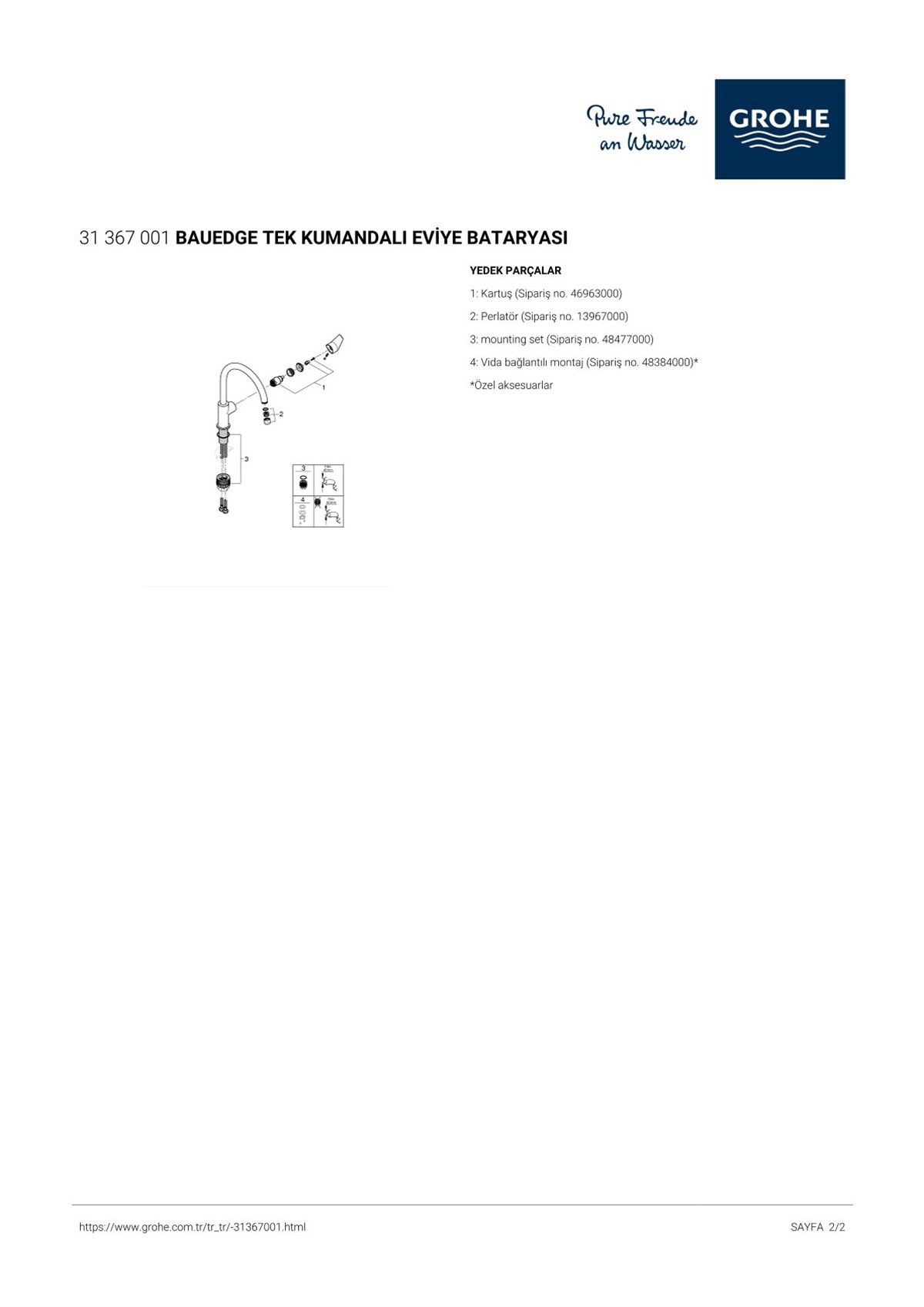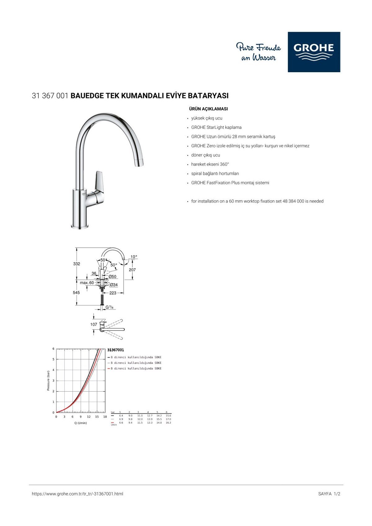 • GROHE Zero izole edilmiş iç su yolları- kurşun ve nikel içermez