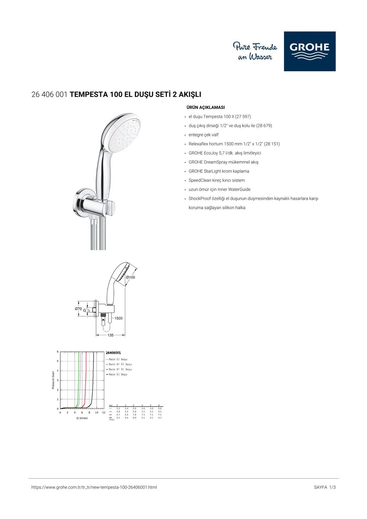 Grohe Tempesta 100 El Duş Seti 2 Akışlı 9,5 LT Krom