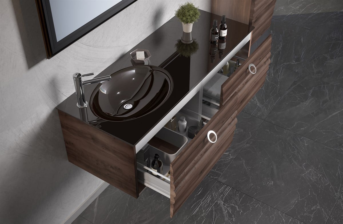 Lavabo; Metalik Kahve Cam Tezgahlı Lavabo